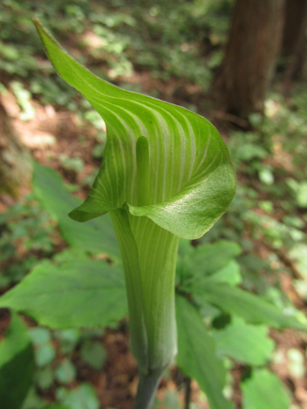 マムシグサについては、じつは枝の広げ方がおもしろいと思ってなんとかわかりやすい写真を撮りたいと思うのですが、この場合は若々しい仏炎苞がきれいでした。