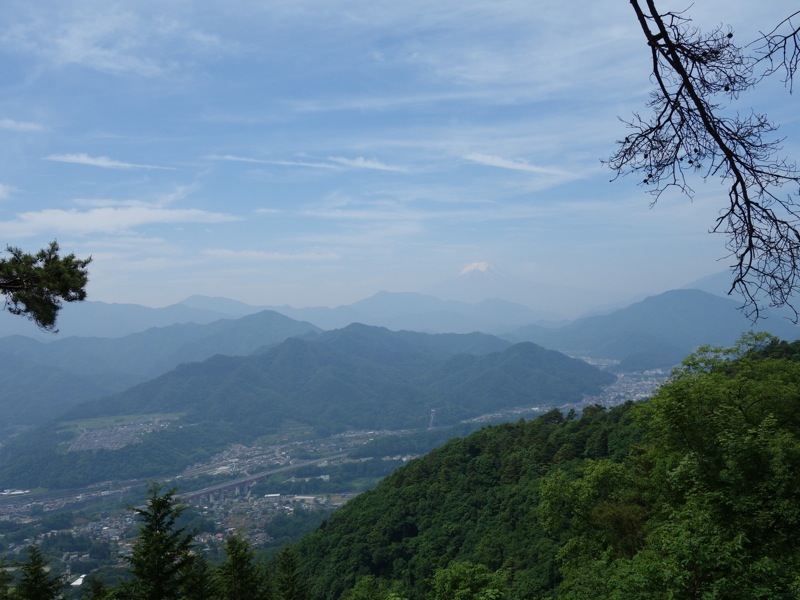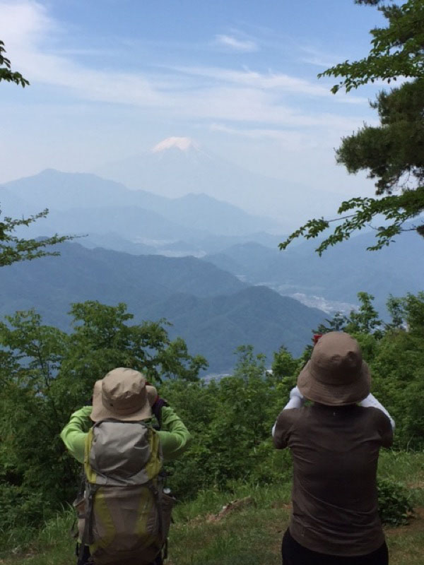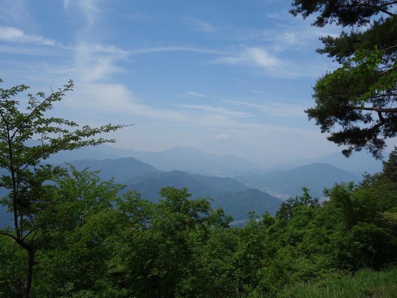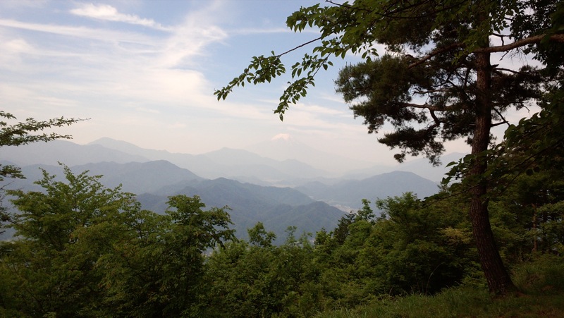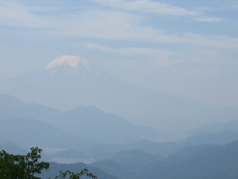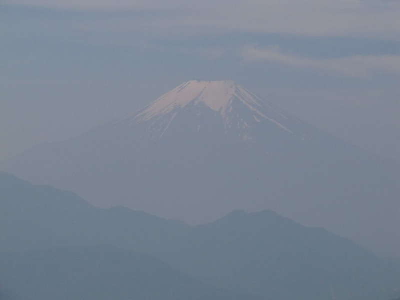 百蔵山から扇山を目指して 少し行くと 予想してなかった富士山が 霞みの向こうで顔を出していました。思いがけない出現に思わずシャッターを切りました。