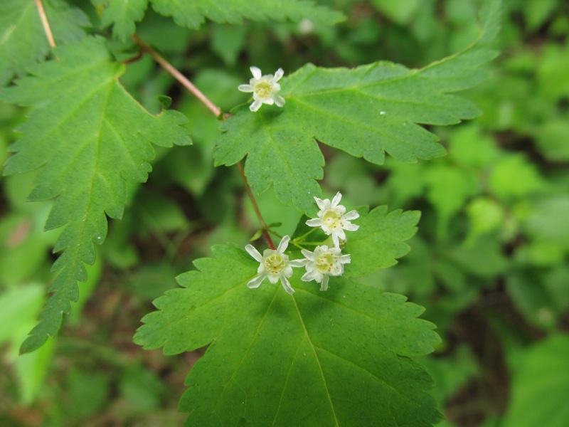 葉っぱも花も個性的です。でも名前は知りません。ところが花の部分だけ大きくしてみるとこれが実に美しい。ただものではない感じです。そこで葉っぱの形を手掛かりに調べてみるとコゴメウツギでした。花は5弁で雄しべが10個。トリミングしてお見せしたいところですが、この発見写真旅では基本的にトリミングと色補正をしませんので、次のチャンスにはぜひ、もっと大きく撮りたいと思います。
