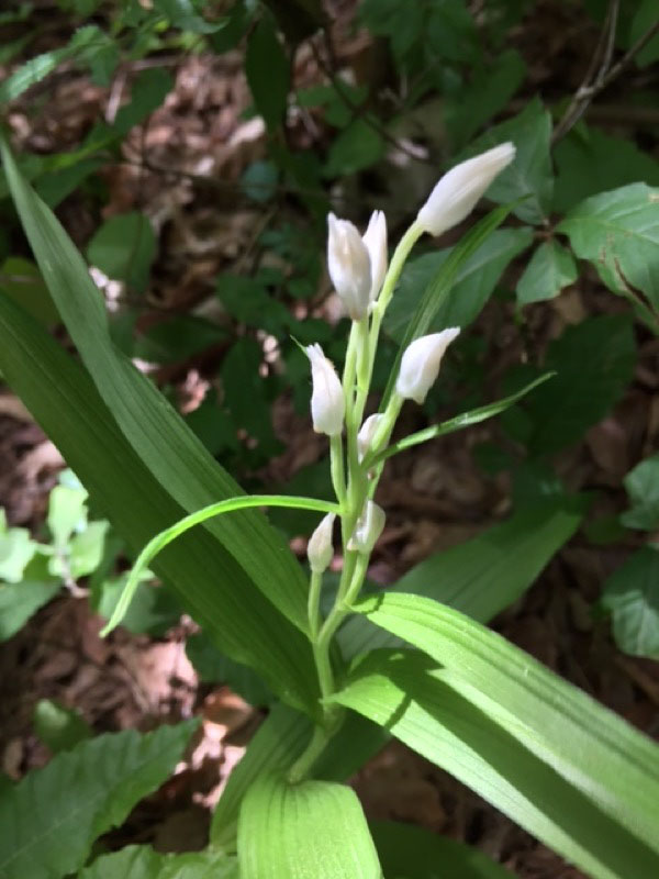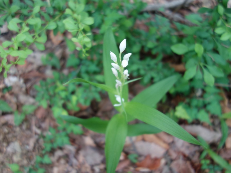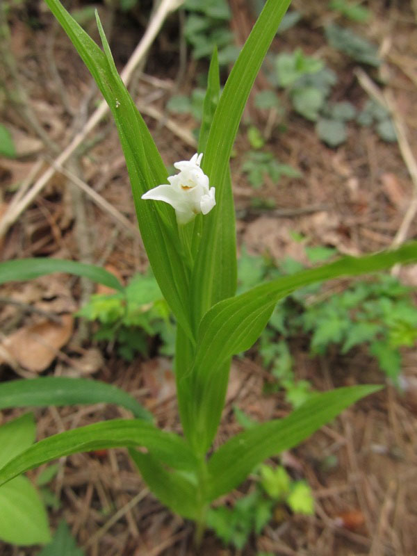 ギンランにしては花がひとつだけというのはどうだろうと調べてみると似ているランがいろいろあるとわかりました。しかしギンランとしておくのが(間違いだとしても)安全という感じがしました。道からではこの方向からしか撮れなくて、前後の写真を見ても判断できません。