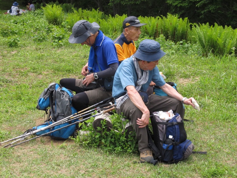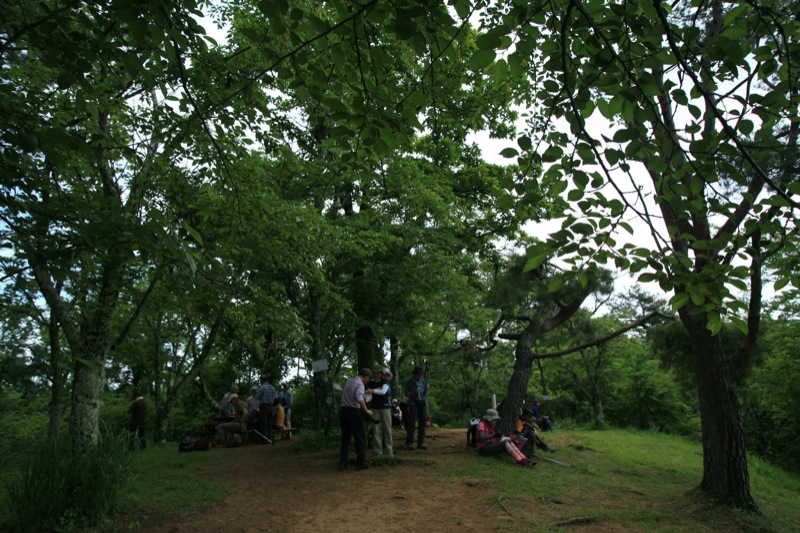 広くてまろやかな山頂なのに、なんとなくこぢんまりと。遠くに見えるのは先着の女性グループ。ストーブ(コンロ)を出して、じっくりと食べている気配でした。