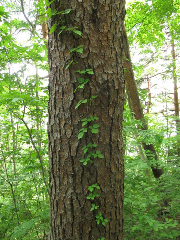 アカマツの幹を直登しているこのツル植物がなんなのかわかりませんが、3枚葉の該当者が見つかりませんでした。でも難なく、スルスルと登っていったように見えます。