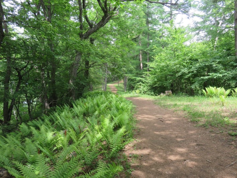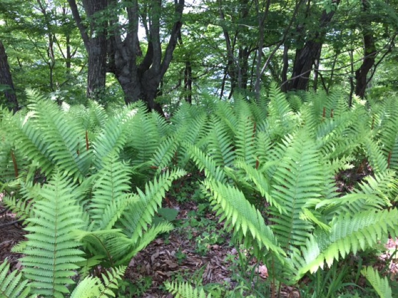 山頂近くの平坦な所にシダの一群。炎天下、堂々の主役級でした。
