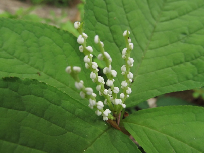 フタリシズカ(センリョウ科)。花期の終盤に入っていたせいかシズカというよりはザワツキ加減の花が多かった