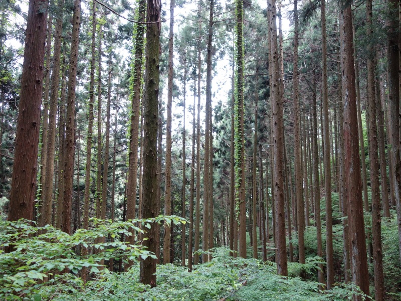 スギ・ヒノキの植林地ながら、下草がこれだけあると、森の雰囲気が漂います。意図してこうなっているのか、陽光を入れすぎてこうなってしまったのか、は、わかりませんが。