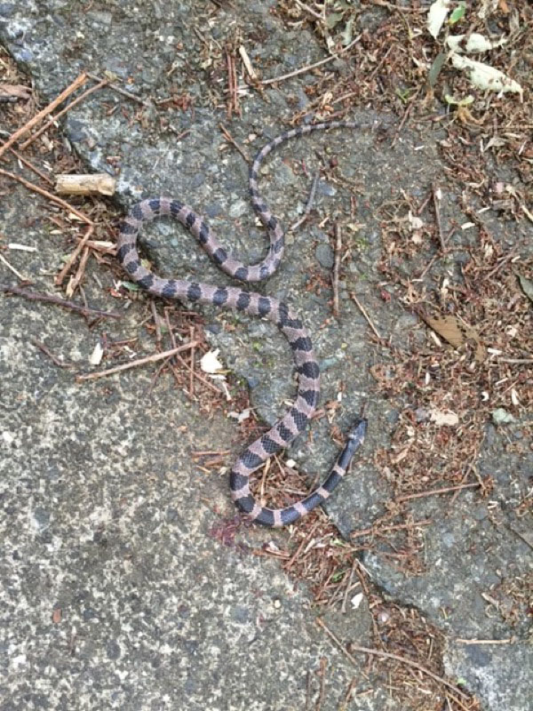 林道に出たとたんに死んだ蛇が登場しました。シロマダラだそうです。