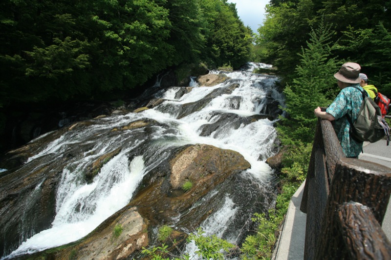 これは「滝上バス停」のところの橋から湯川のさらに上流、戦場ヶ原に向かって見ています。川沿いの遊歩道は竜頭滝バス停から滝上バス停までの間をショートカットしています。この近くから高山への登山道が始まります。