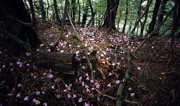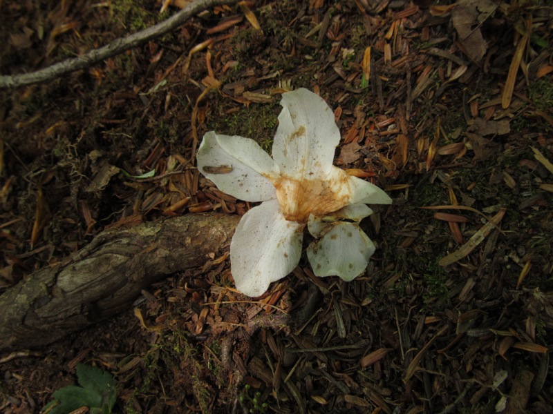 足元に、シロヤシオ(五葉躑躅)の花が落ちていました。ついこの間まで、咲いていた花です。これを期待してきたのです。