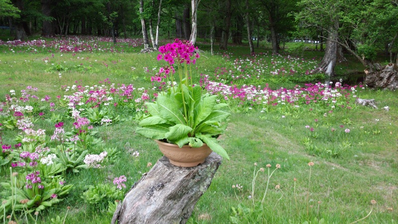 それから、千手ヶ浜ではかつての「東京アングリング&カントリークラブ」のクラブハウスだったところに、いまクリンソウが一面に咲き誇っています。せっかくですから見に行きます。