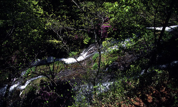茶店の脇から上流に向かうと、滝の落ち口の渓流が見えています。