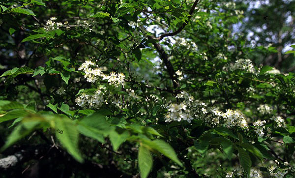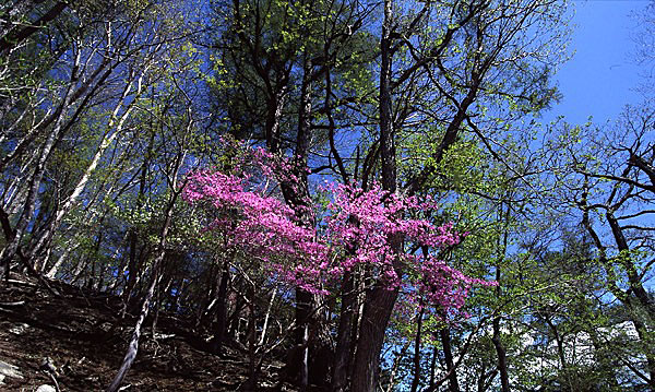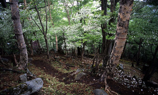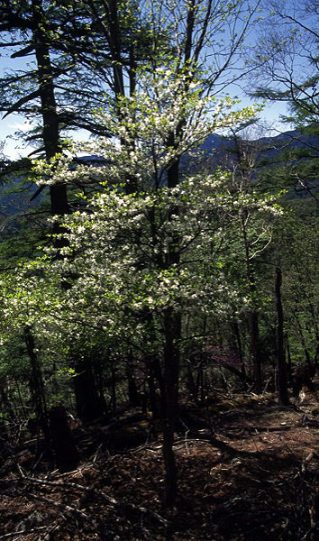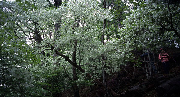 登山道の入口は以前とちょっと違いますが、すぐに合流します。このあたり、じつはズミ(小梨)の花の美しいところです。