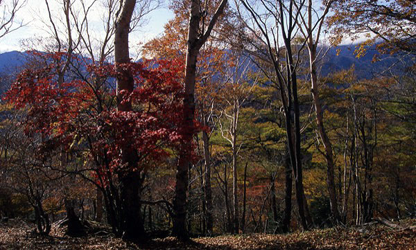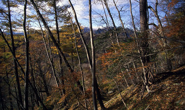 冬だと、この辺りの木はほとんど葉を落としているので、男体山と向かい合う場面なのですが、今回はほとんど見ることができませんでした。