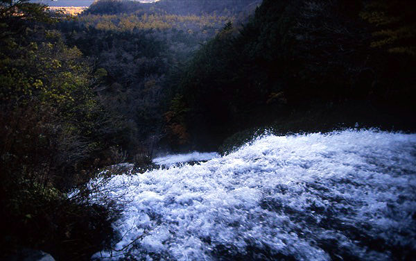 湯川の流れを主役にすると、こんな感じでしょうか。写真にしてみたら実際の印象より急な感じになりました。