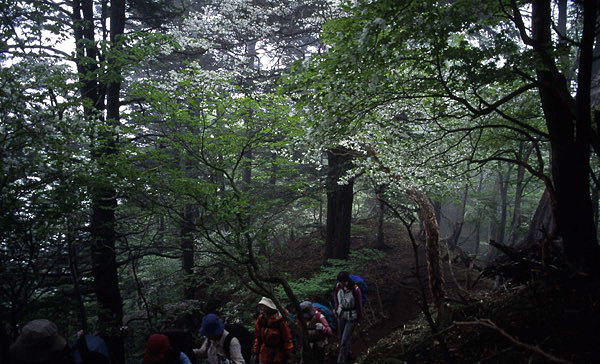 初めてこの奥日光に通年住むようになったという伊藤乙次郎さんの著書によるとその時代、千手ヶ浜で熊を見たことはないとのことですが、現在では夏に中禅寺湖畔のキャンプ場をうろつく熊さんがいるのです。だから高山に登るときには熊との遭遇を期待していたのですが、一度だけ、それがかないました。最近では私は最後尾を歩くことがほとんどなので、そういう期待はしなくなっていますが。