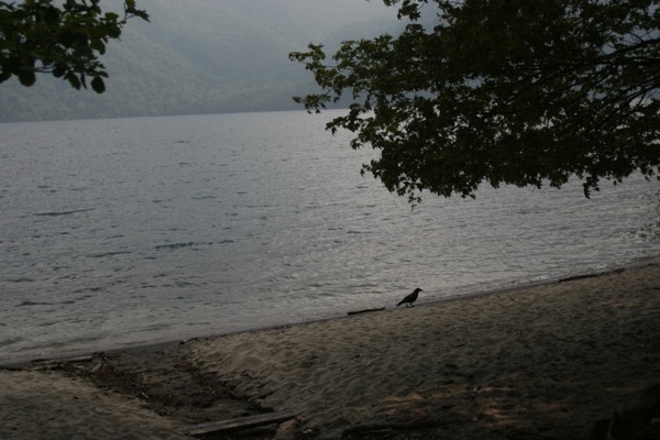 必然的に、帰りは千手ヶ浜から低公害バスとするか、湖岸を菖蒲ヶ浜へと歩くかですが、湖岸の道もすばらしいので、歩きましょう。菖蒲ヶ浜に出たところが日光プリンスホテルです。────