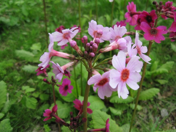 この日は1155に竜頭の滝(標高約1,300m)を出発。1235−45稜線に出て(標高約1,450m)休憩。1320−25山頂手前の稜線(標高約1,550m)で休憩。1345−55高山山頂(標高1,668m)。1435−45中禅寺湖・小田代原分岐(標高約1,500m)で休憩。1550-1600千手ヶ原でクリンソウ(標高約1,300m)。湖岸を経て1730ごろ菖蒲ヶ浜(標高約1,300m)。