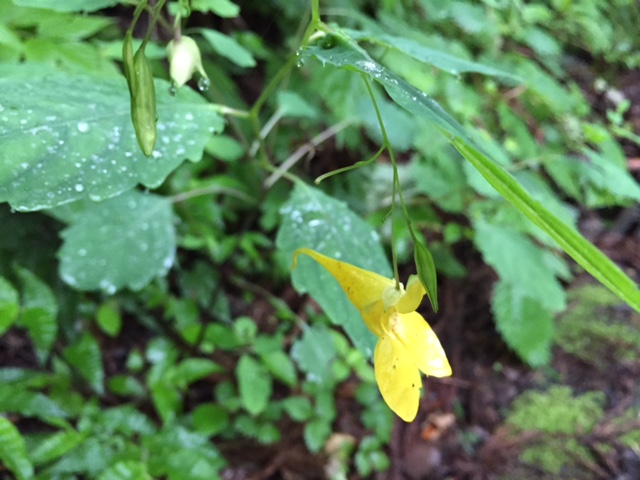 キツリフネ。思わず吹いて揺らしたくなる。涼しげで女性的な形。