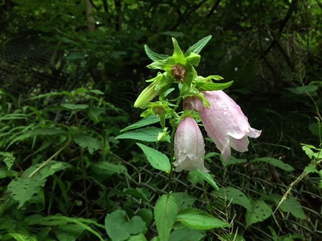 残っていたホタルブクロ。周辺には緑ばかり。珍しくはないけれど薄めの色が一層目をひいた。
