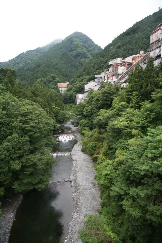 日原川の上流側です。奥多摩工業氷川工場が谷の斜面にへばりついていることがわかります。上流側から奥多摩工業曳索鉄道が無人のトロッコで石灰石を運んでくるのだそうです。