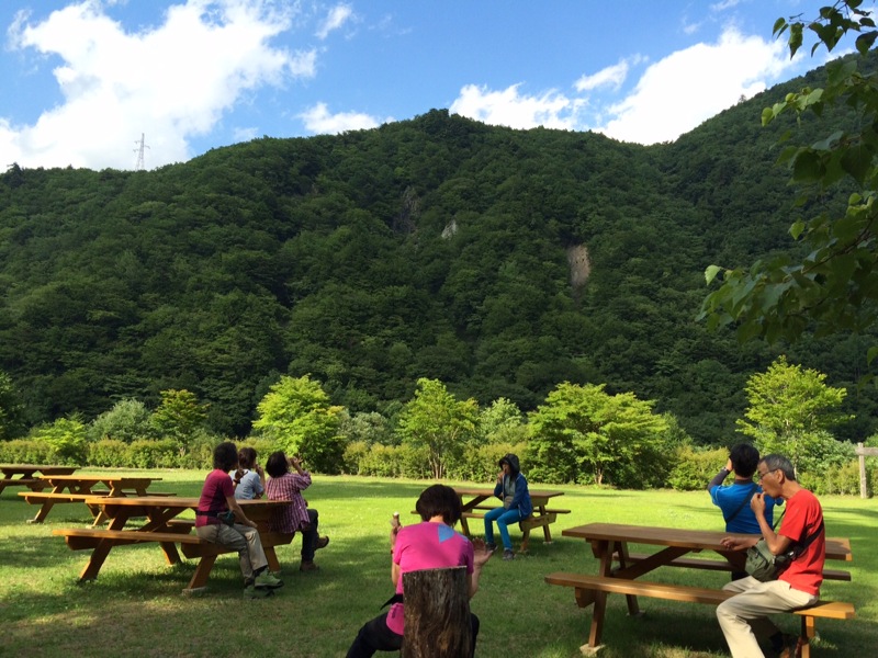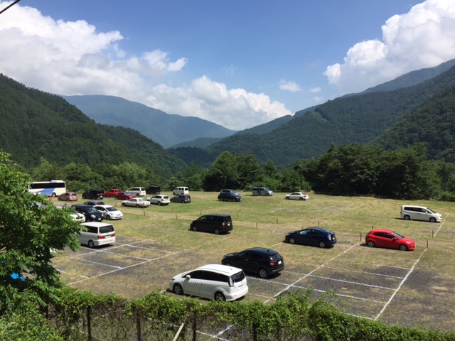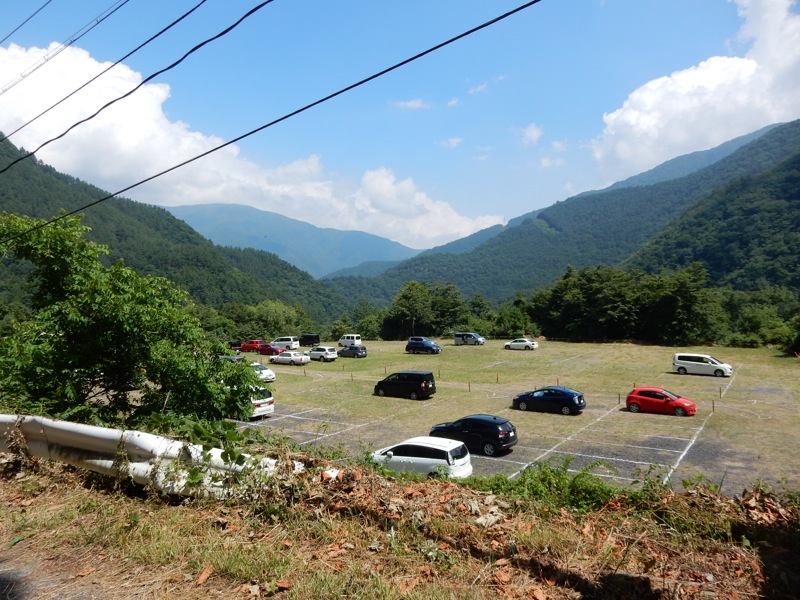 畑薙駐車場。延々とここまで。覚悟はしてたけど、普通のタクシーだったら大変だったかも。ワゴン車でありがたかった。いい天気は、明日以降にとっておいてほしいという気分だった。