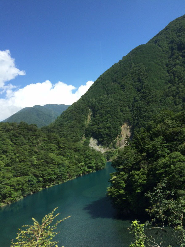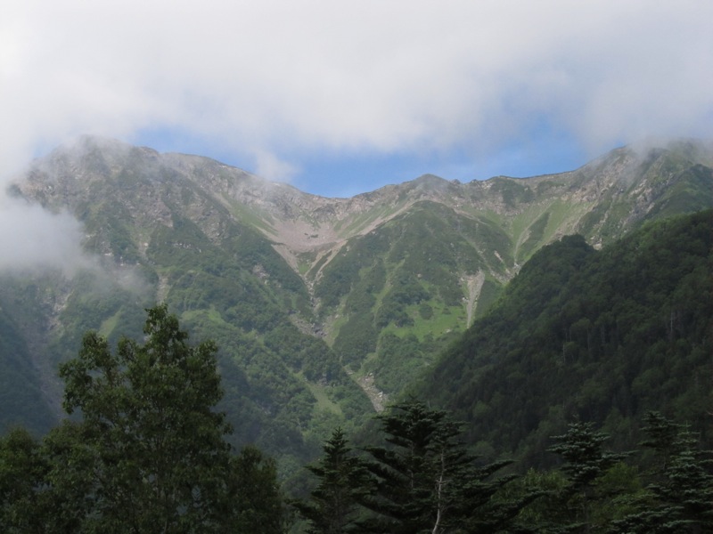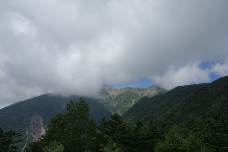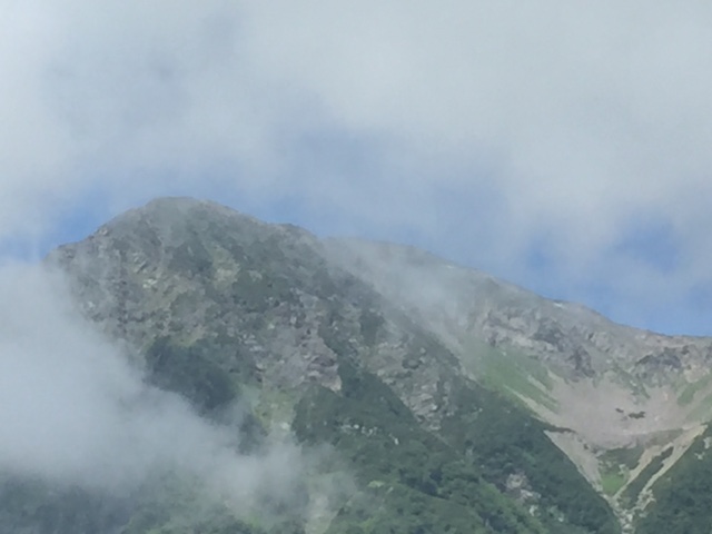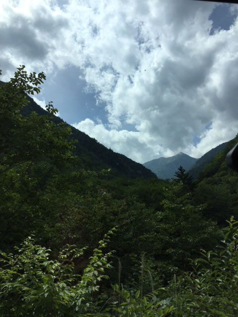バス車窓から、赤石岳見納め。この世のものとも思われぬ筋肉痛のお土産をもらっていたとは、この時は知る由もなし。