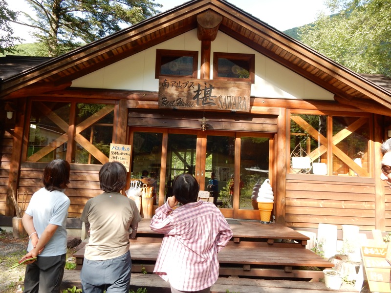 椹島ロッジには12時30分に着きました。ソフトクリームなど食べながら送迎バスを1便待って、14時の最終バスに乗りました。畑薙第一ダムからタクシーで静岡へと向かう途中、赤石温泉白樺荘で入浴。運転手さんと相談しながらとろろ汁の元祖・丁字屋から始まって何か所か検討したにもかかわらず休みだったり、時間外だったりで食事は大ハズレ。駅ビルの食堂街にあった「魚がし鮨」に生しらす丼があったのでそれで手を打ちました。