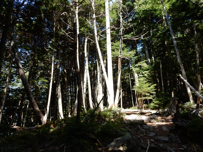 ここはよく覚えています。富士見平からのだらだらと長い下りのトラバース道が終わったところ。眼前の一角がお花畑休憩をしたところです。