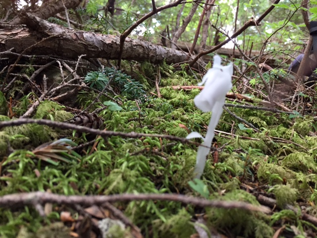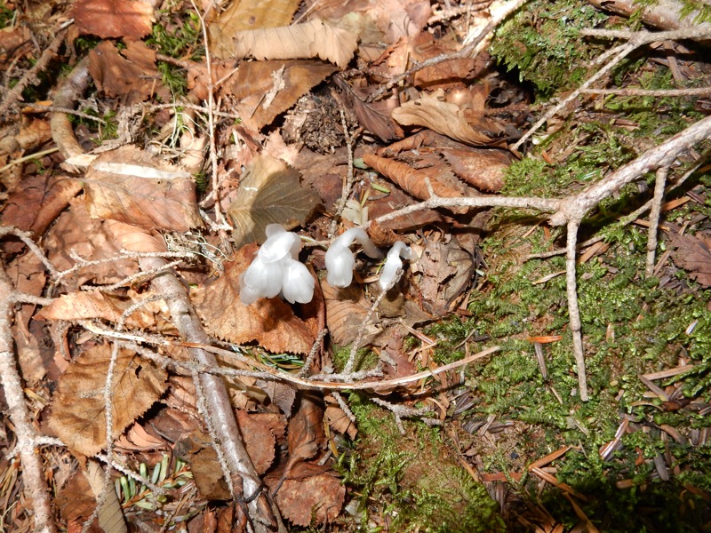 ボケています、ひとりぼっちギンリョウソウ。初めて見た時はキモイ印象だったけど、見る度に好感度アップ。キモカワを経て、今ではキモも取れて、カワイイです。