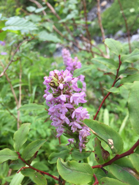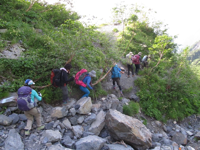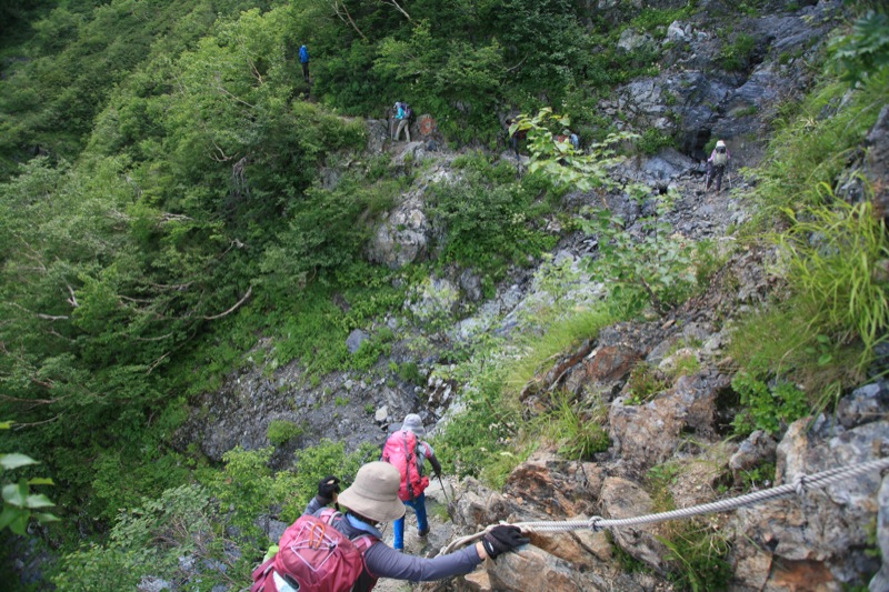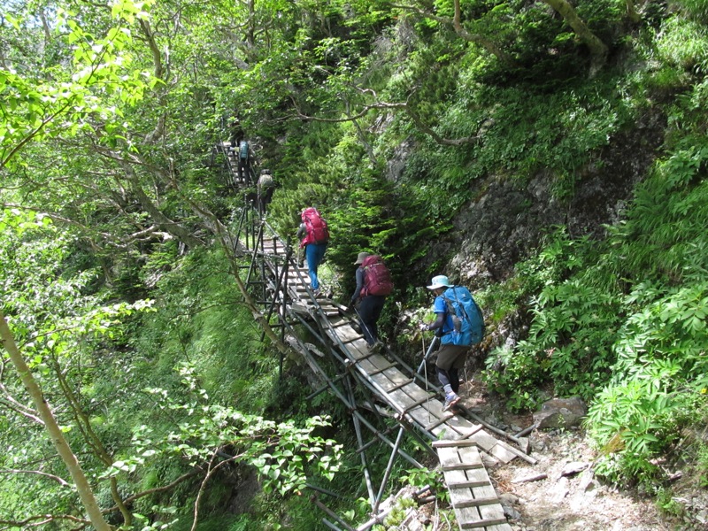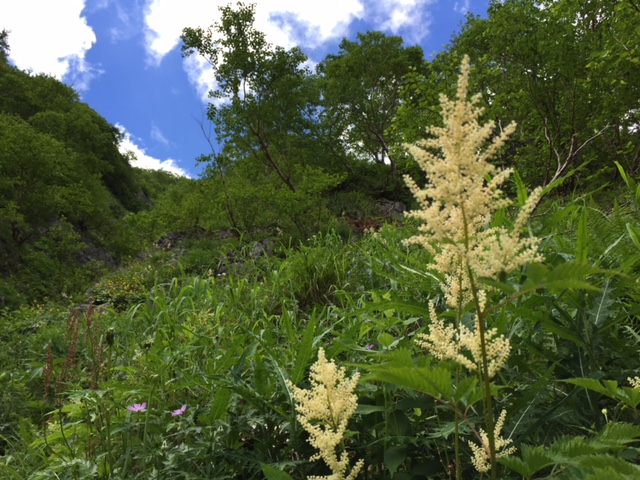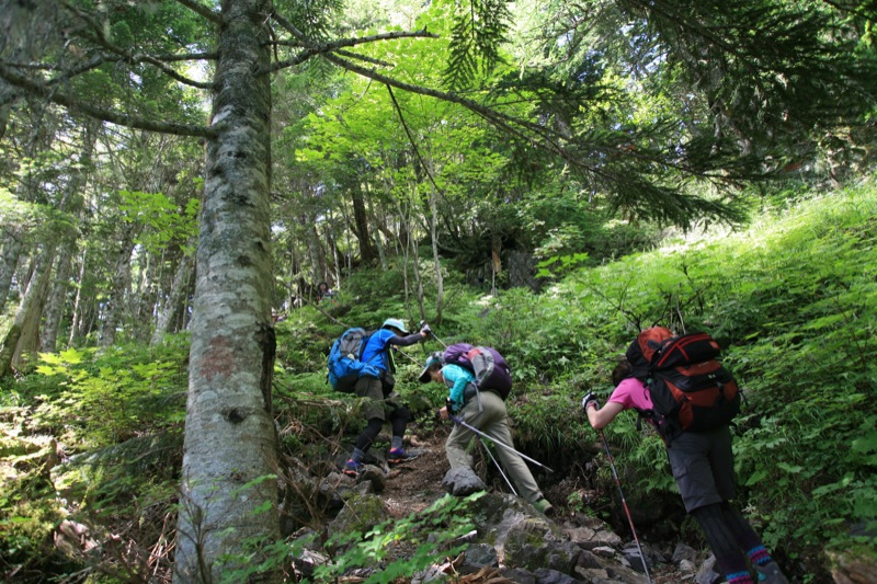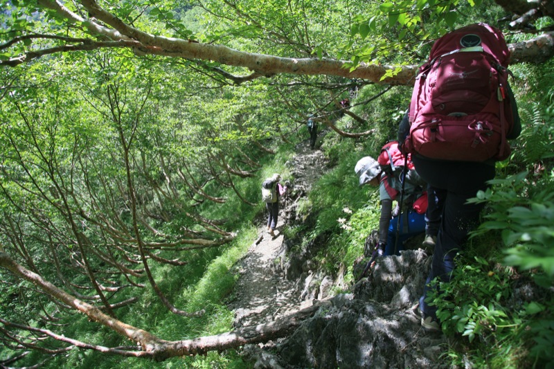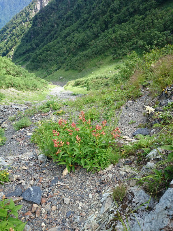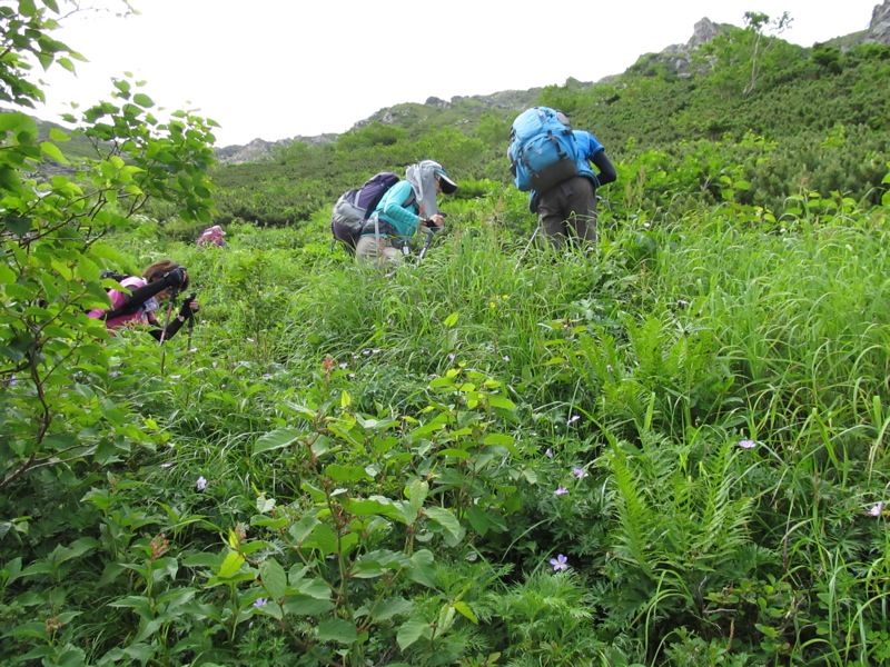 右手に沢が迫ってきました。このあたりは次々に現れる花を楽しみながら一歩一歩登ってきたところです。下りになると「たしかここにあった」というような花はほとんど目に入りません。若い頃の山には、ほとんど花なんてなかったことがよくわかります。