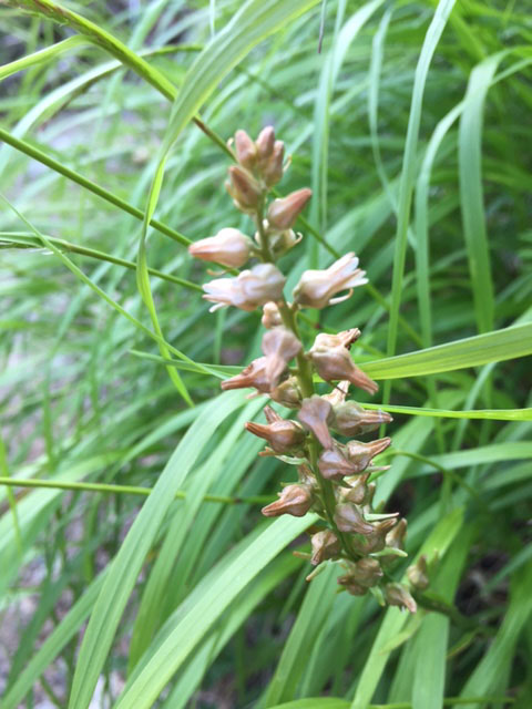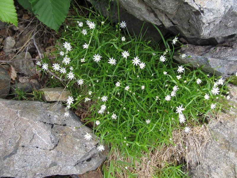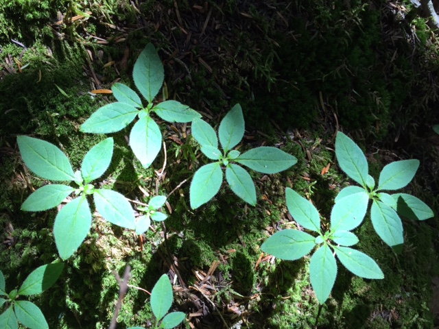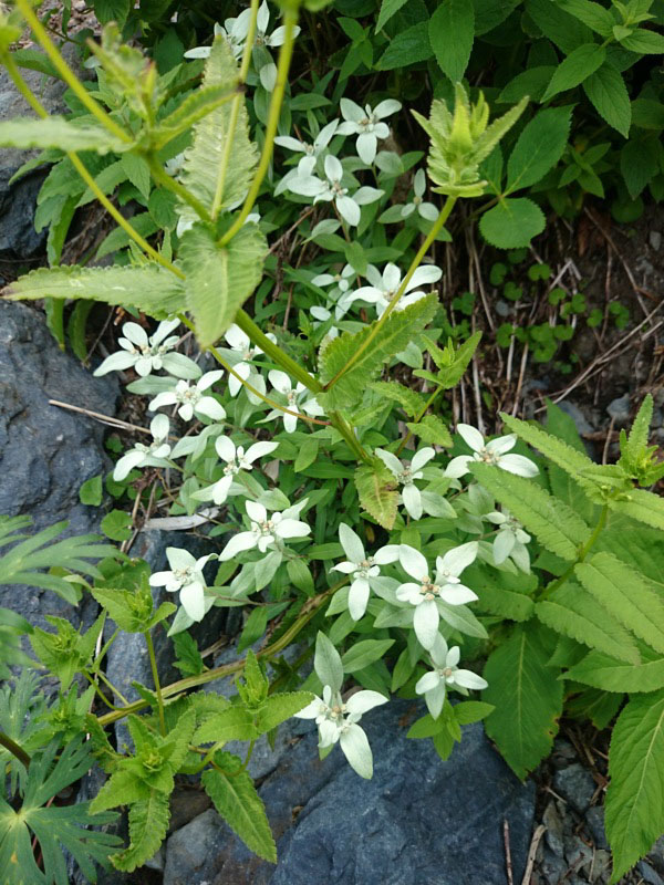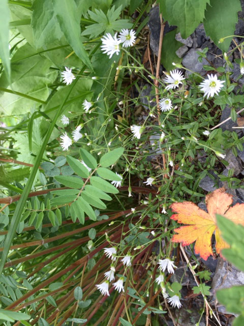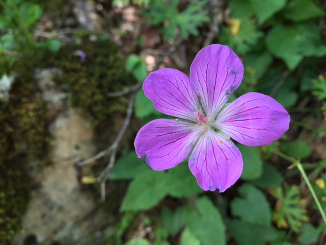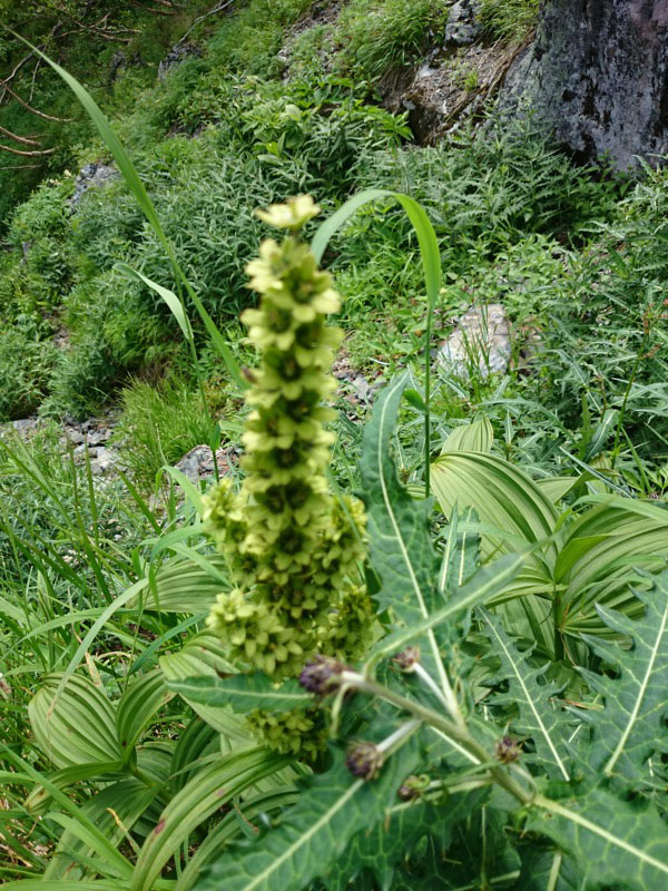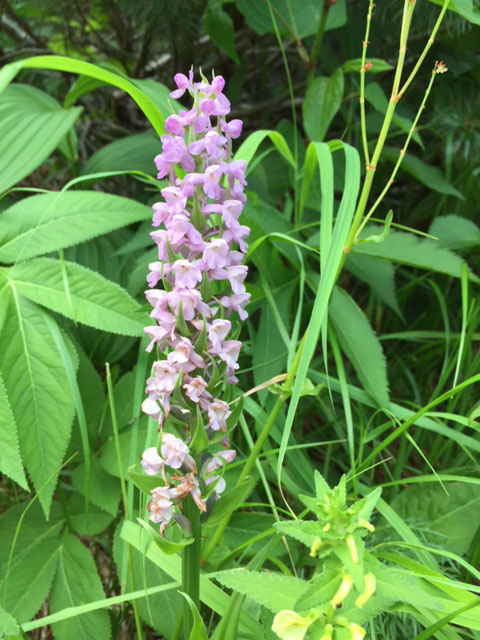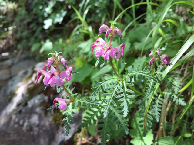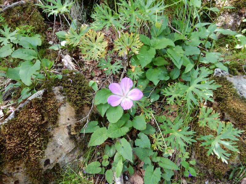 右手に沢が迫ってきました。このあたりは次々に現れる花を楽しみながら一歩一歩登ってきたところです。下りになると「たしかここにあった」というような花はほとんど目に入りません。若い頃の山には、ほとんど花なんてなかったことがよくわかります。