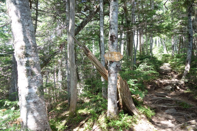 ・1020-25……休憩(標高約2,050m)「椹島へ90分」の標識