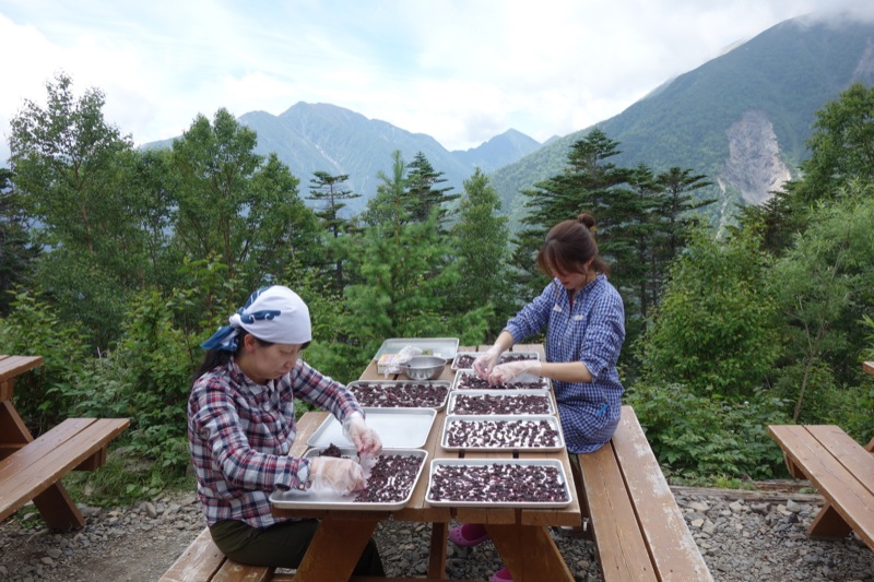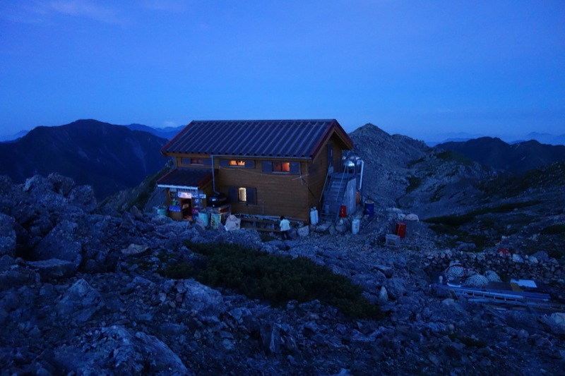 *グループでも10人未満なら「予約の必要はありません」という大原則に関して、事前にずいぶん長時間の電話でのやりとりをして「わかりにくい」といくぶん憤慨していたのですが、赤石岳〜荒川岳とその周辺の山小屋はかなり緊密な無線ネットワークで結ばれていて、宿泊登山者の動向がリアルタイムに把握できるようなのです。予約が不要という裏側では、リアルタイムで予約状況が把握されるシステムになっている、と感じました。