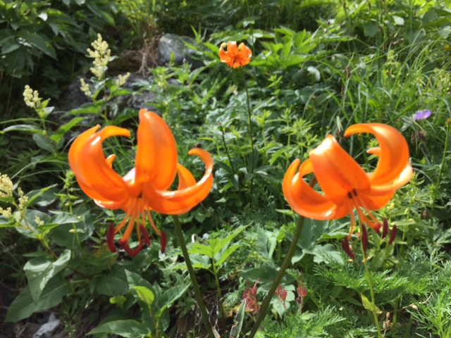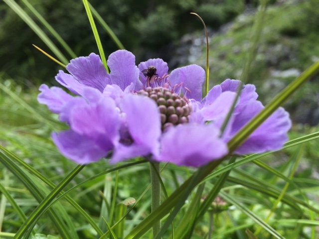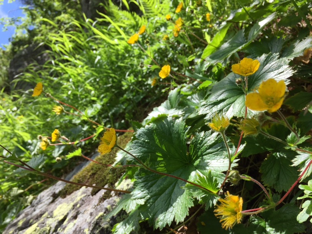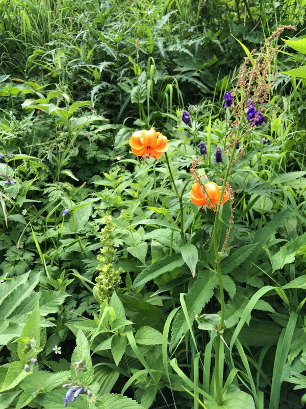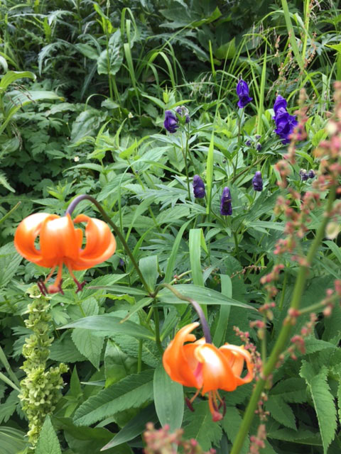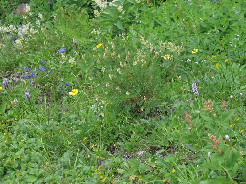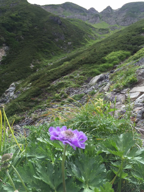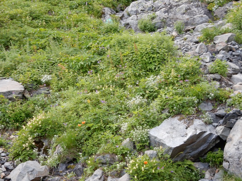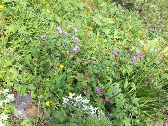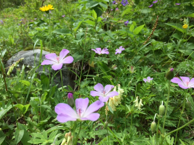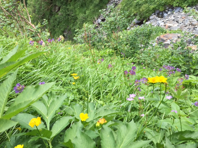 標高差2千メートルの下りの途中には、気持ちのいいお花畑もあった。