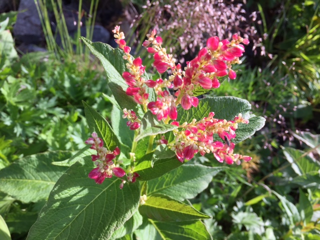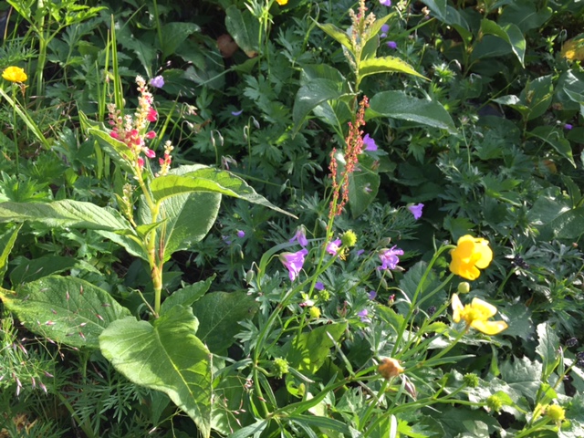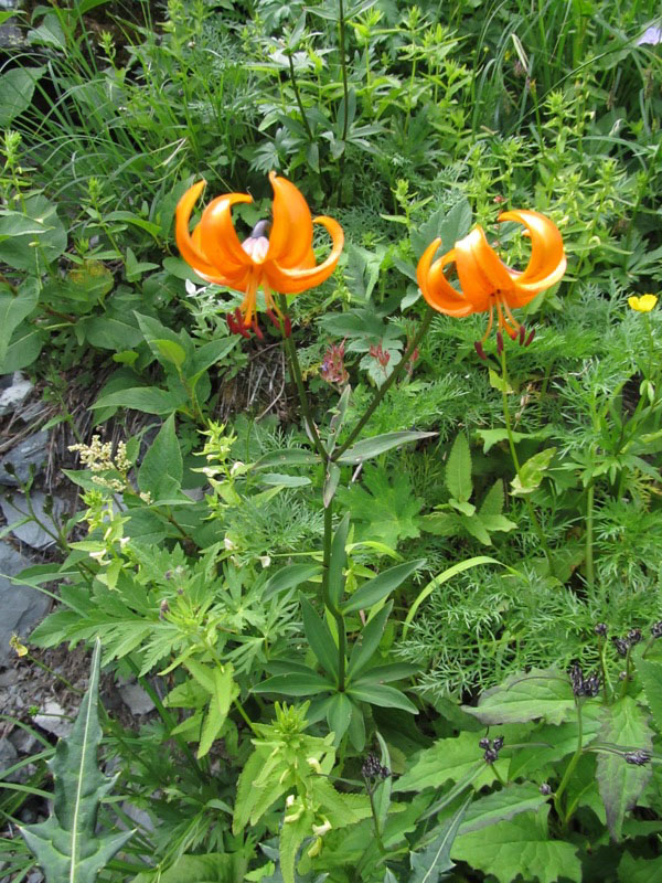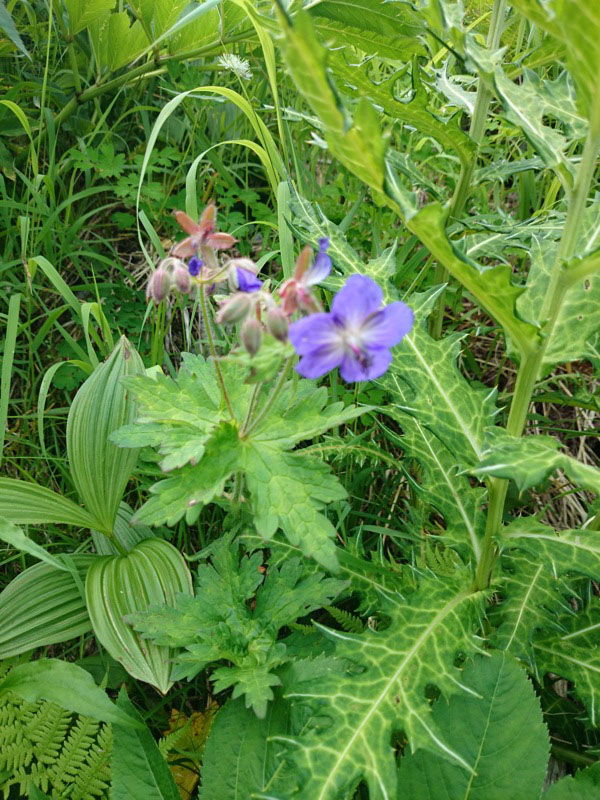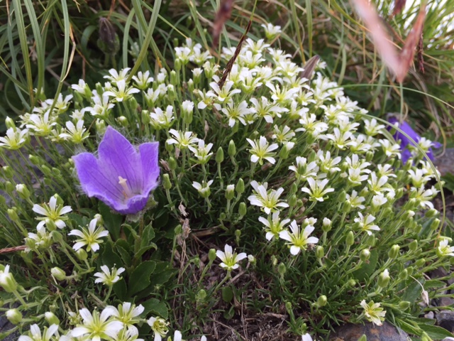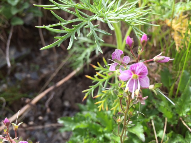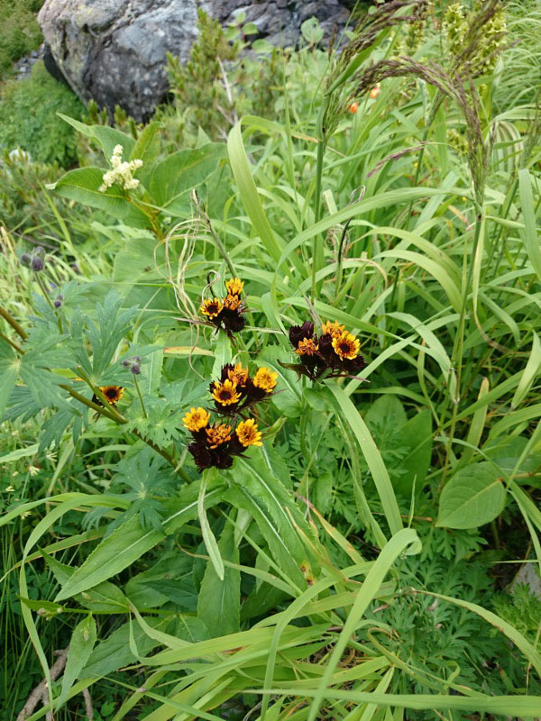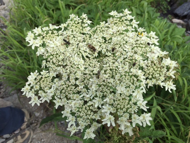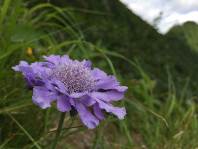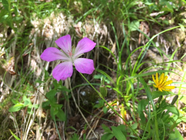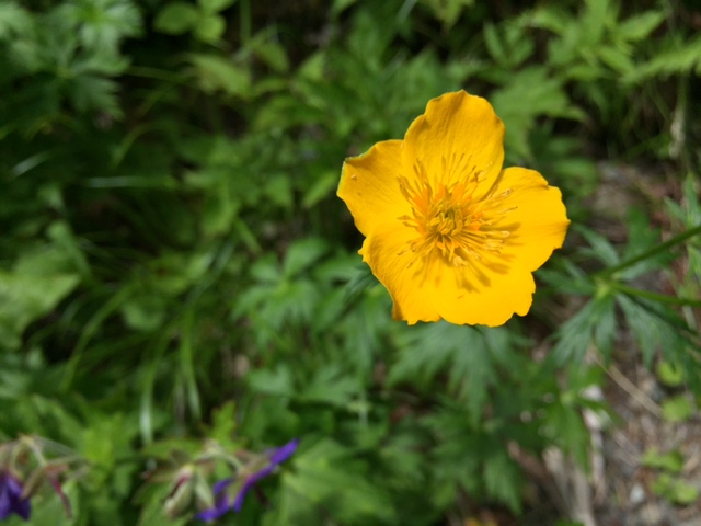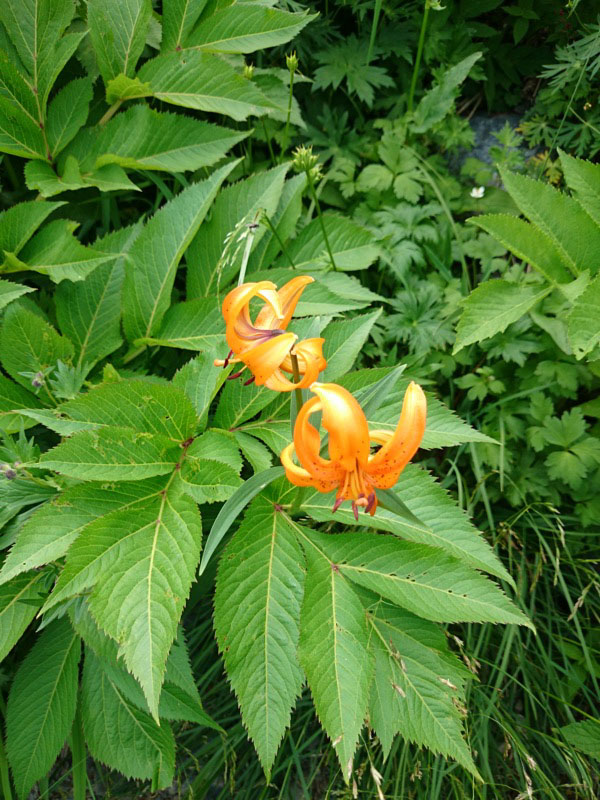 標高差2千メートルの下りの途中には、気持ちのいいお花畑もあった。