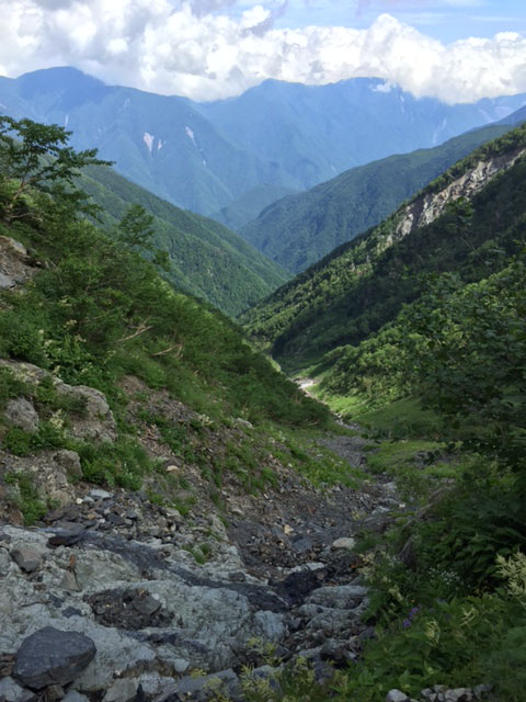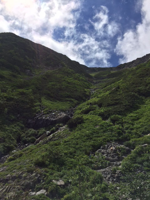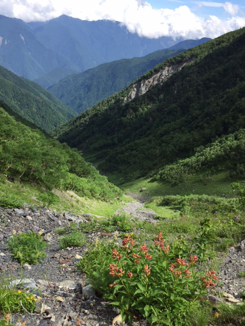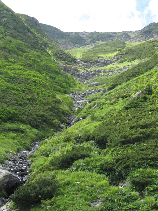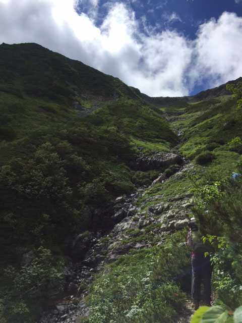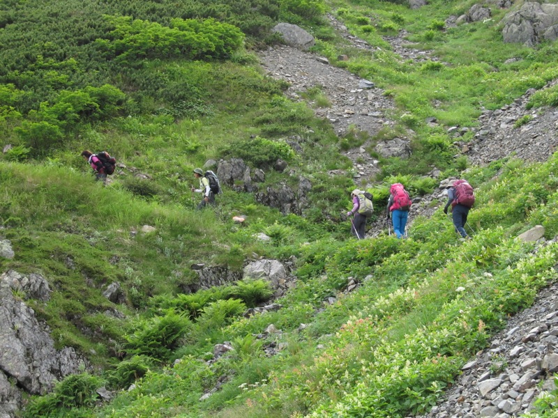 お花畑の谷へここから下ります。昨日登ってきた道です。