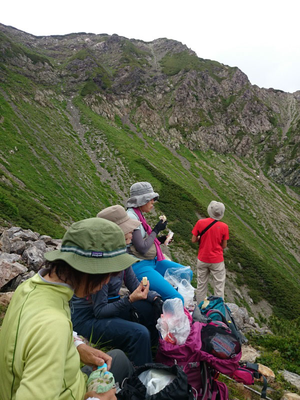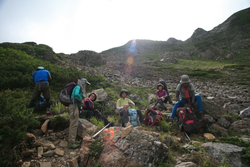 *しかし実際はもうひとつ用意していた最後のプランになりました。赤石小屋に着いたとき、昼食として食べられるものが予想よりはるかによかったのです。全員、十分に元気だと見えました。天気も悪くない。小1時間の長い休憩をして一気に、このまま山頂まで登るべきだと思いました。
