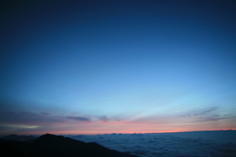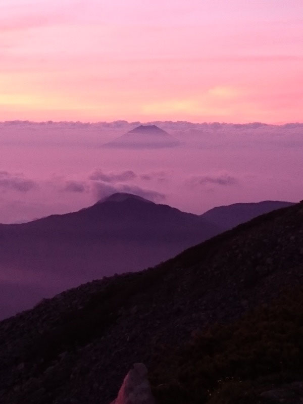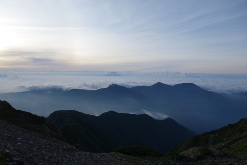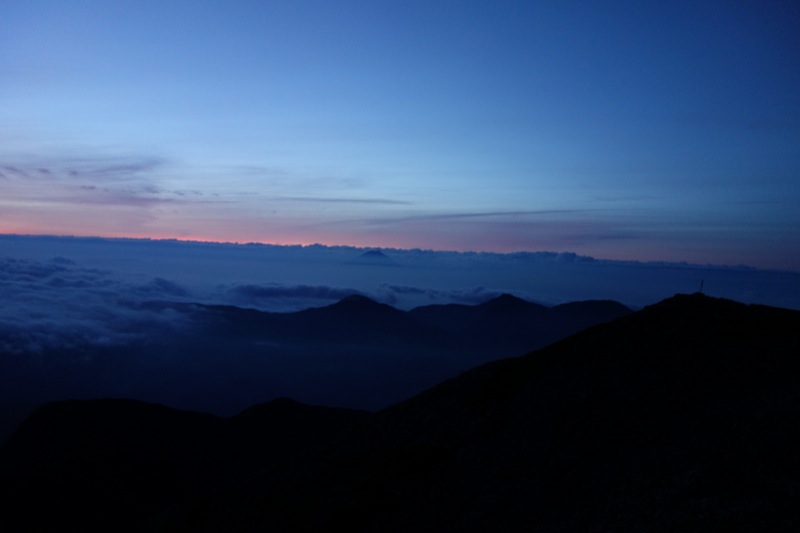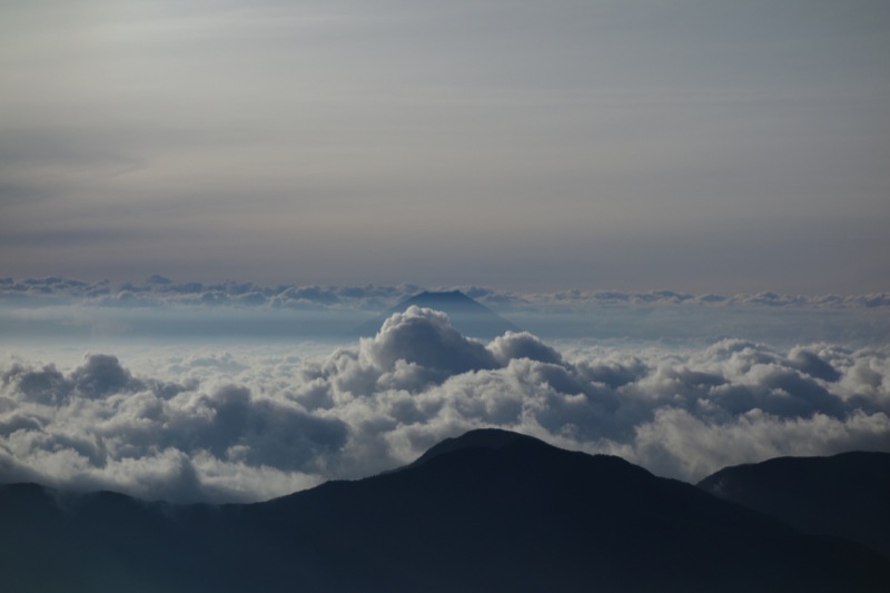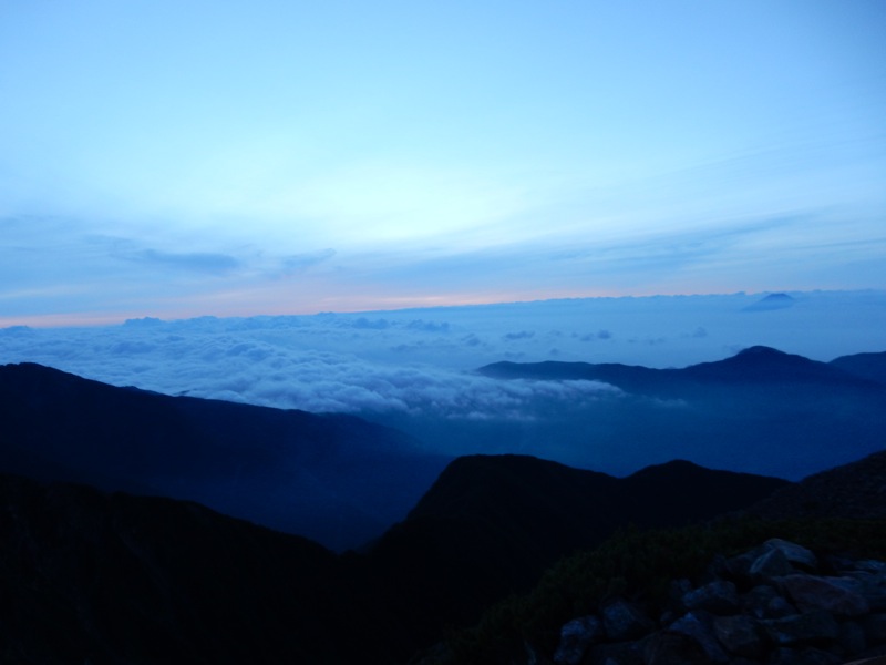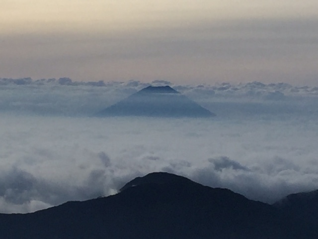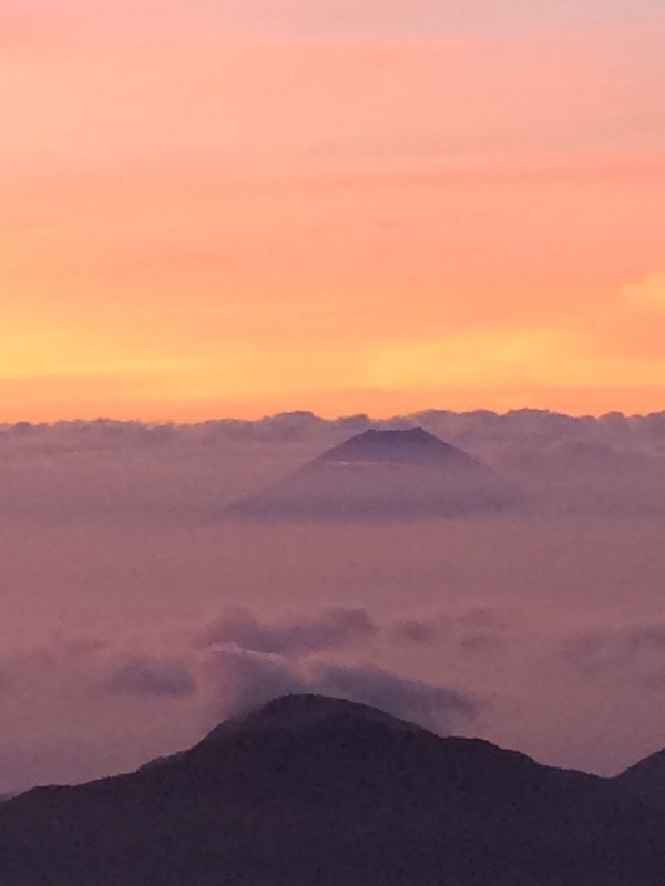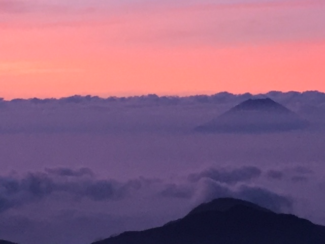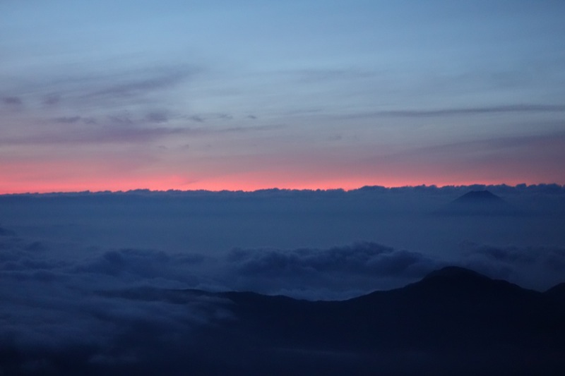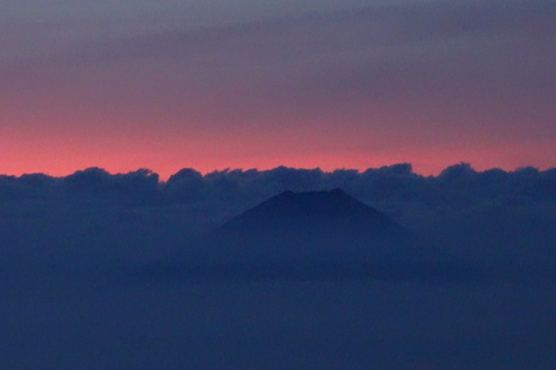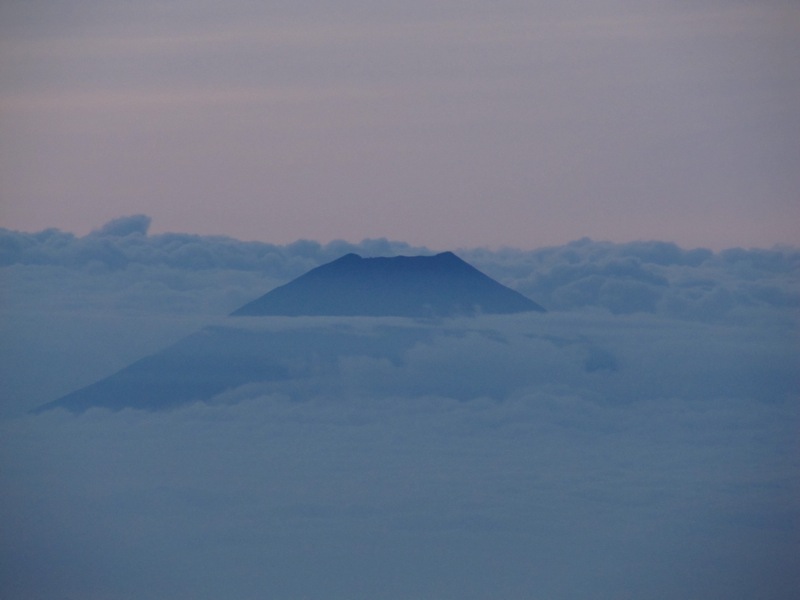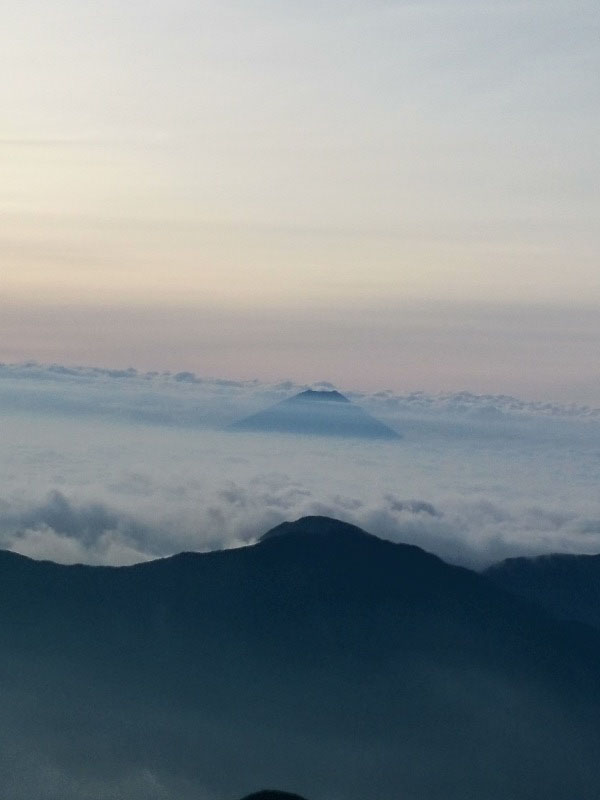 まだ朝の気配が残った雲海の様子。富士山もうっすらと見えます。
