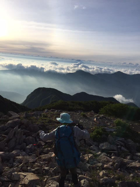 もっとも私たちは登りはふつうのシニア登山者ですが、ダブルストックのお陰で、下りは2ランクアップぐらいの上級者と考えていいのです。そこのところは小屋のみなさんの判断がすこしちがっていたと思います。私たちは足を痛めずに下りきる自信はありました。ただ、時間的にギリギリかもしれないという小さな不安は残っていましたが。
