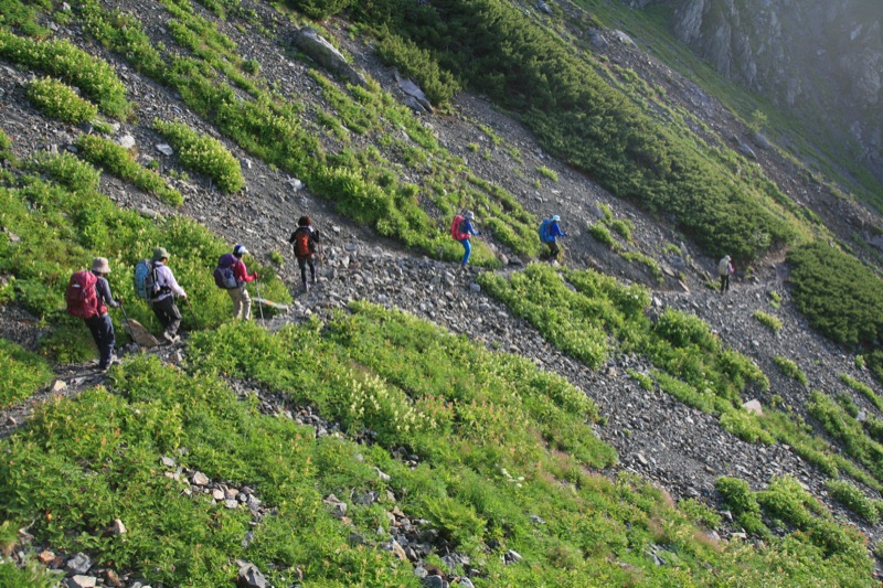 ものすごく不安定な斜面で、毎年、この緑は雪と闘っているのだろうと想像します。