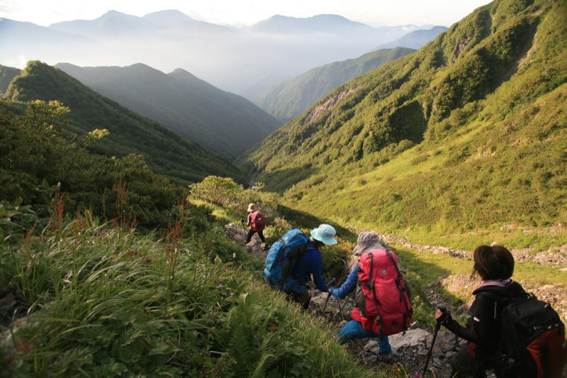 登り・下りの両方で、ここできちんとした腹ごしらえができなかったら、一気登りも、一気下りも躊躇したかもしれません。それだけの価値ある止まり木となっている赤石小屋あってこその、標高差2,000mの脚力テストは、丹沢の「バカ尾根」よりはるかに大きなスケールでチャレンジできるということを発見したことになります。