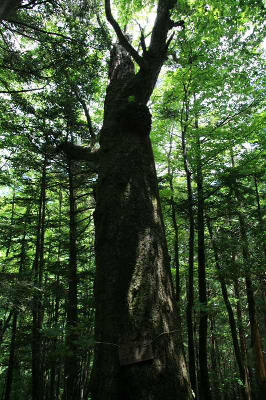 植林地にはところどころにヌシみたいな巨木、古木が残されていますが、「ミズナラ」という看板がつけられていました。