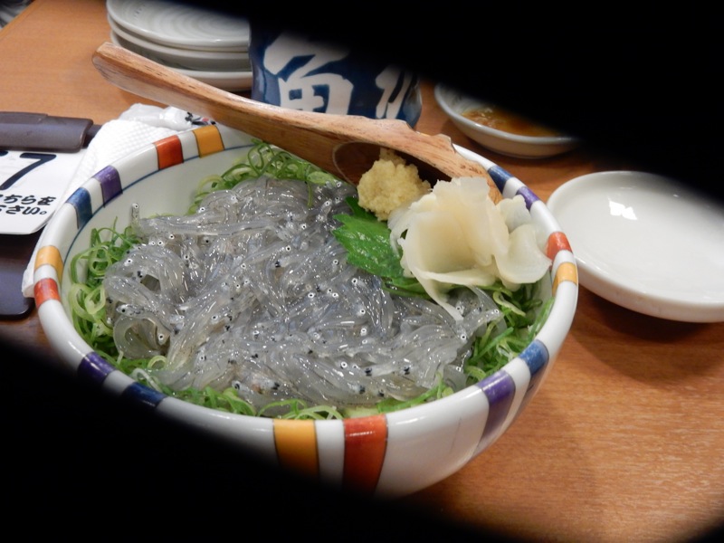 静岡駅ビルにて夕食、大方の人がご覧のシラス丼を注文。