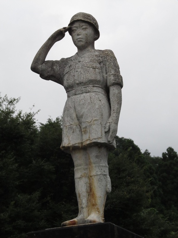 蓑毛バス停の近くに立っているこの像は昭和26年(1951)に建てられたといいます。見た目は軍国主義的な匂いがしますが、社団法人東京少年キャンプ連合会の創設10周年記念碑とか。その組織はネット上で探せませんでしたが。