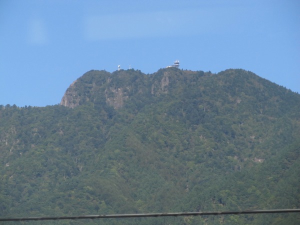 午前8時35分に大月駅を出た富士急行電車は9時6分に三つ峠駅に停まります。この写真は三つ峠駅付近から撮った三ッ峠山山頂です。