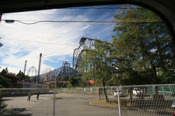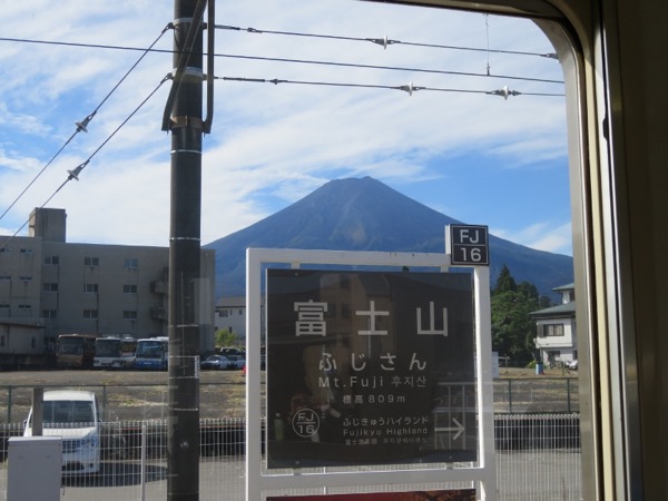 富士山駅と終点の河口湖駅との間にあるのが富士急ハイランド駅。有名な絶叫マシンと富士山が重なり合いながら車窓をよぎります。なかなか上手く撮れないけれど。