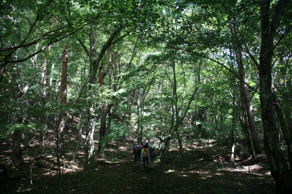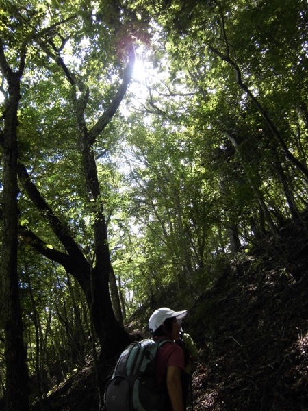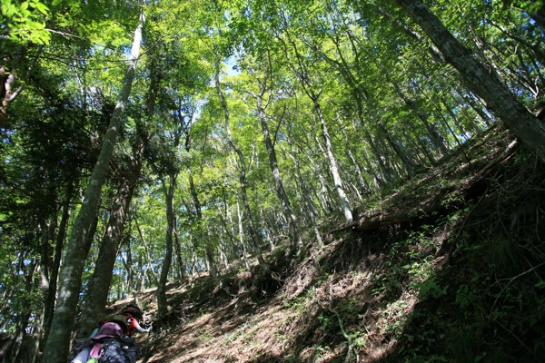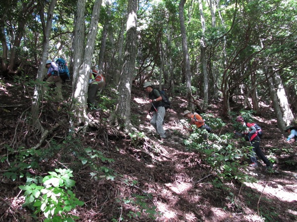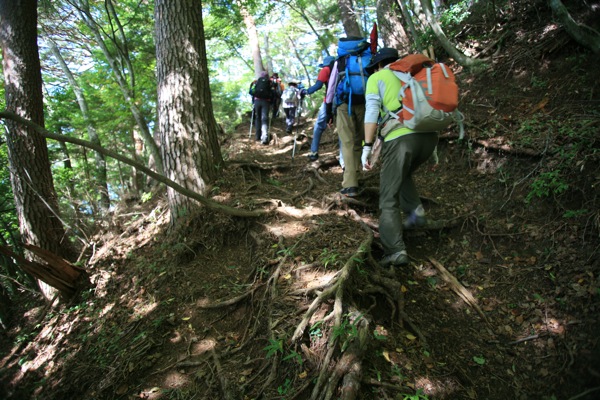 道はすぐに登りになります。烏帽子岳(標高1,257m)に向かって標高差約350mの登りです。