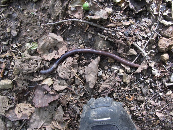 ミミズさんが1匹、自殺行為といわれる地表での迷走をしていました。