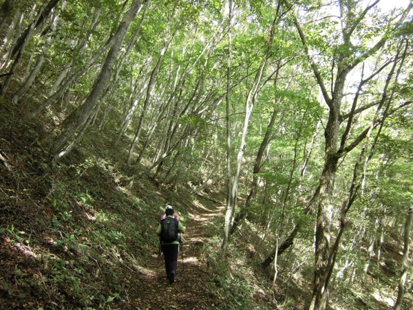 秋晴れの青空、明るい陽射し、紅葉にはちょっと早いとはいえ、気持ちのいい登りです。