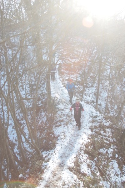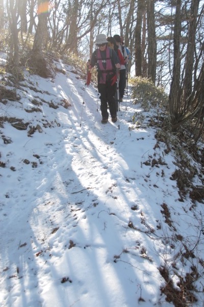 おそらく雪がついていると思いますので、軽アイゼン必携です。(伊藤が予備を持参します)