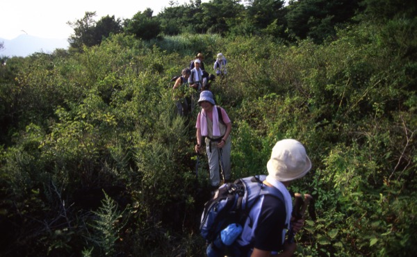 私が登山にほとんど興味を持っていなかった少年時代、この駅からこの山に登る人たちには「夜行日帰り」が人気だったと記憶しています。「半ドン」の土曜日の夕方からか夜からか、この駅に向かい、どういう電車だったかは知りませんが、早朝に登り始めて日曜日中に帰宅、というスケジュールだったようです。ちなみにその当時、日本隊のマナスル登頂に始まる一大登山ブームには土曜日の午後から日曜日の朝までという週末フル登山もあったようです。今も夜行の登山バスなどがありますが、この山への夜行日帰りはもうないでしょう。私が企画してきた三ッ峠山はすべて裏口からですし、こちら側から上ったときには山頂で1泊しています。